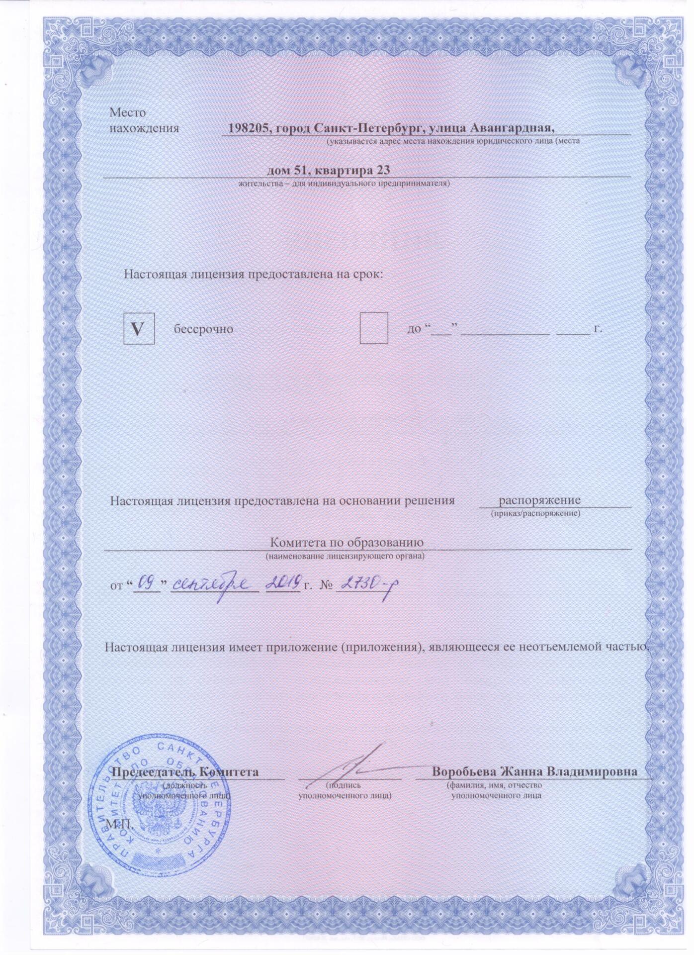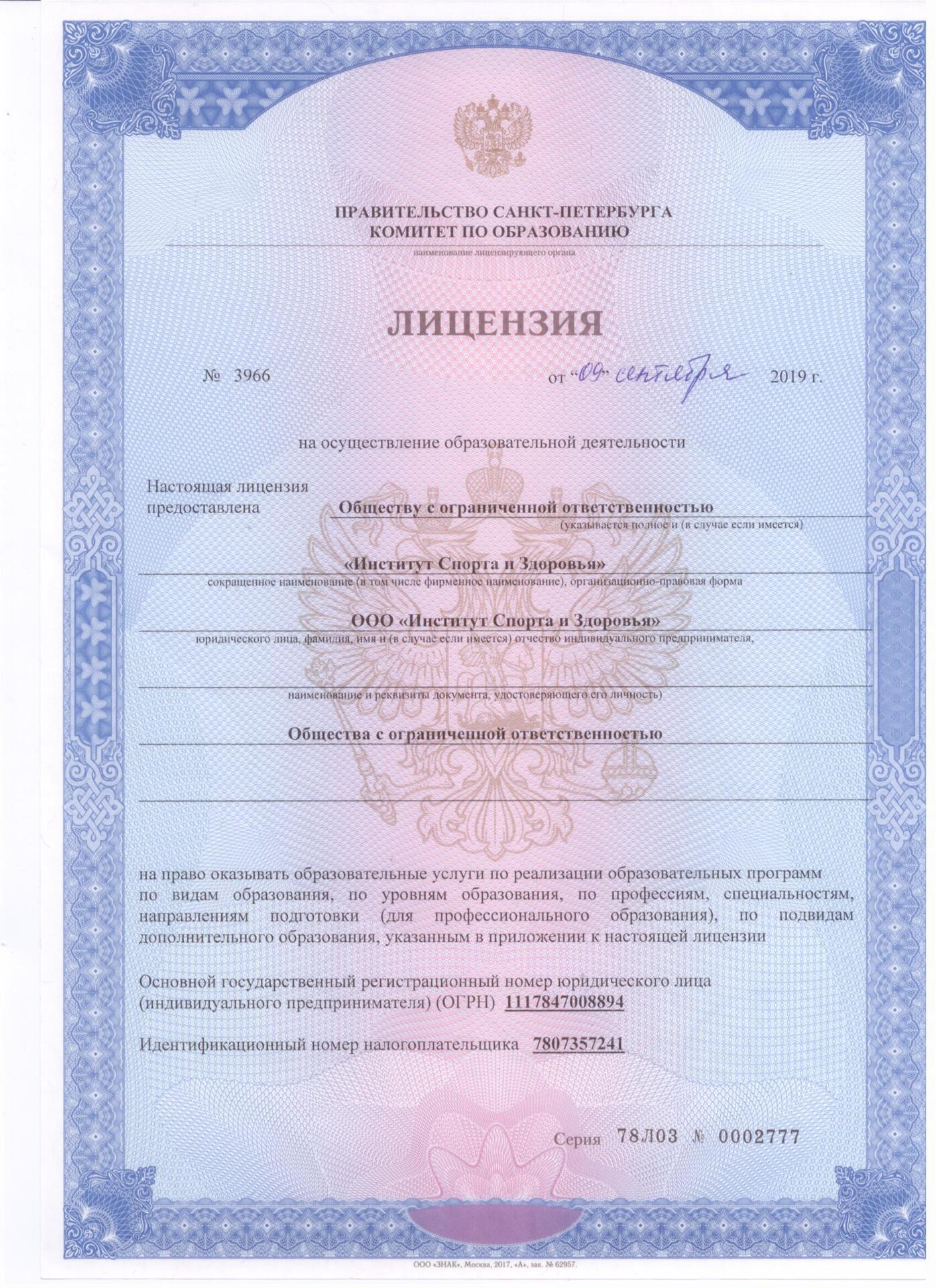 Лицензия на обучение №3966 от 09.09.2019 г.